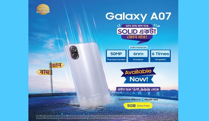 সিনিউজ ডেস্ক: দেশের বাজারে আনুষ্ঠানিকভাবে গ্যালাক্সি এ সিরিজের সর্বশেষ সংযোজন গ্যালাক্সি এ০৭ উন্মোচন করেছে স্যামসাং বাংলাদেশ। স্মার্টফোনের মিডরেঞ্জ সেগমেন্টে দীর্ঘস্থায়ী ফোন ব্যবহারে নতুন মানদণ্ড স্থাপন করবে ফ্ল্যাগশিপ ফিচার সমৃদ্ধ গ্যালাক্সি এ০৭।