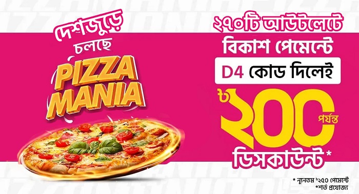 পিৎজা কিনে বিকাশ পেমেন্টে ২০০ টাকা পর্যন্ত ডিসকাউন্ট